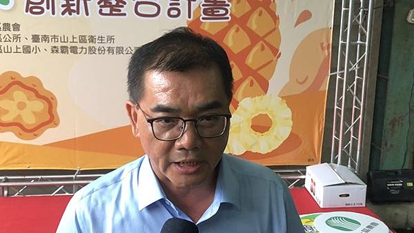 【柿子日報記者李玲/台南報導】為讓民眾體驗山上16號甜蜜蜜採果樂的鳳梨農情活動,山上區農會今(28)日上午於產銷班農民周清勇果園召開2024食農教育創新整合記者會,介紹食農體驗主題活動,現場並展示遊程內容、當季生產的優質農產品及在地伴手禮。