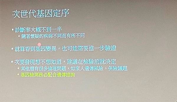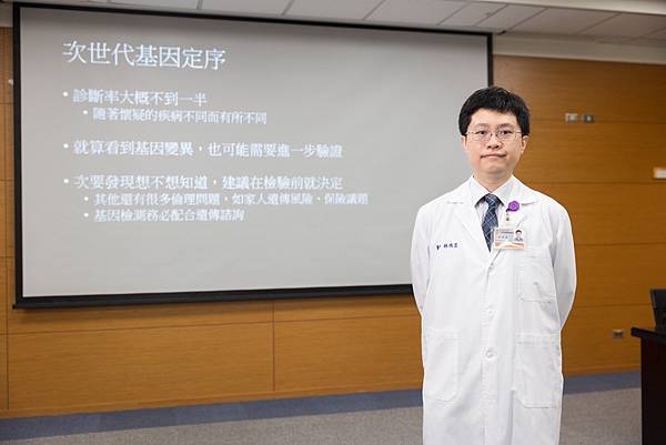 林伯昱醫師提醒,次世代基因定序雖然能一次檢驗大量基因,但診斷力大約只有一半,而且就算發現可能造成疾病的基因變異,也時常需要進一步驗證才能確診。目前次世代基因定序為自費檢驗,病患接受檢驗前,務必和醫療團隊詳細討論,對次世代基因定序充分理解和合理期待,才能促進醫病雙向合作,協助病患及早得到正確診斷。