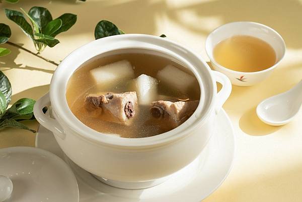 「消暑翠玉珍味湯」冬瓜消暑、利尿,加入排骨、干貝、螺干,海陸各樣的鮮味,冬瓜的清甜和海鮮的鮮味相結合,每一口都充滿鮮香和自然的甜味,令人回味無窮。「鮮蓮百合銀耳露」正值夏天是蓮子產季,配上潤肺的百合、充滿膠質的銀耳,很適合夏天當結尾甜品,。