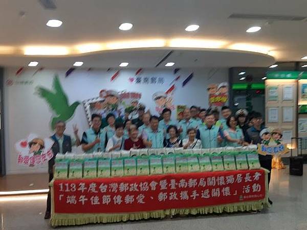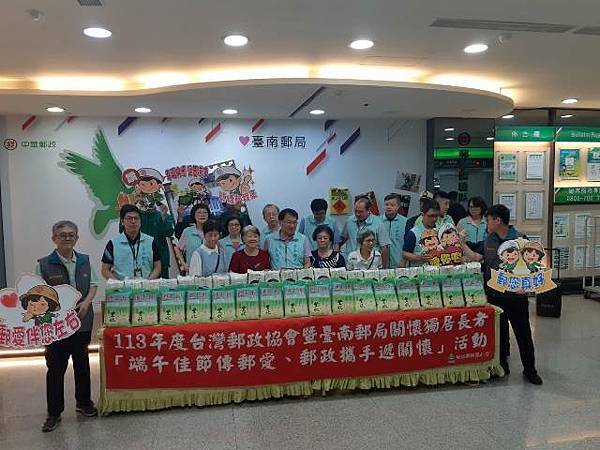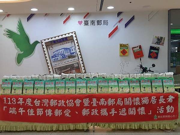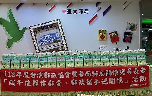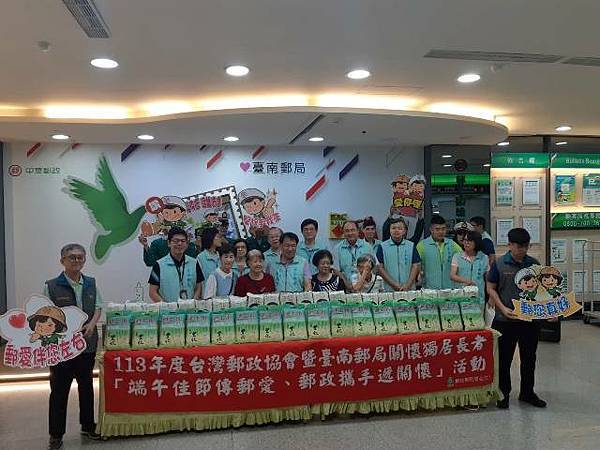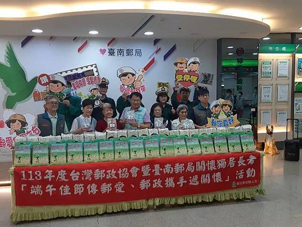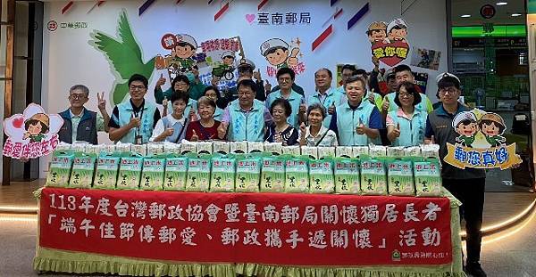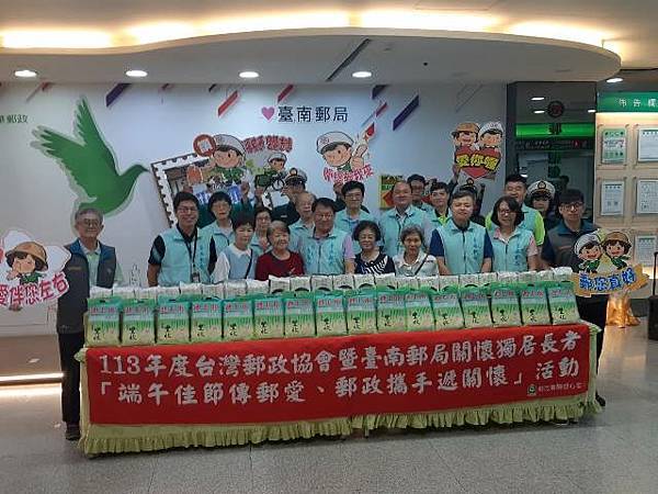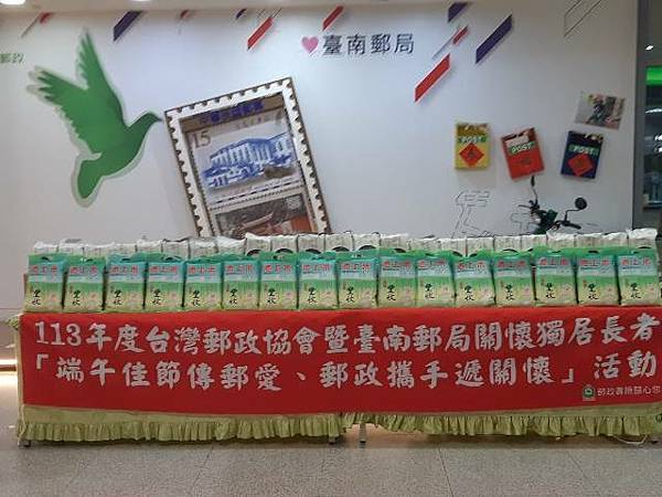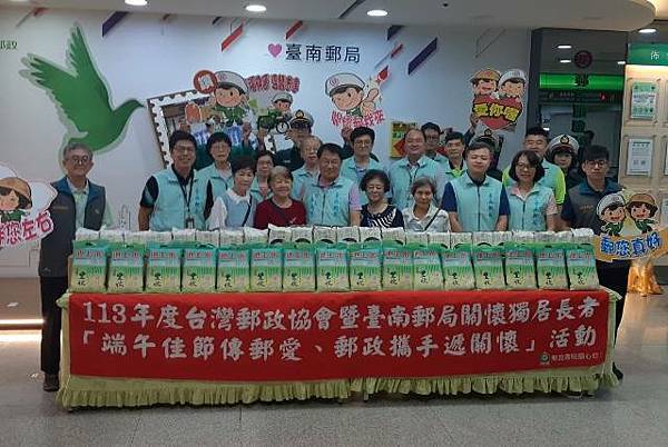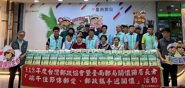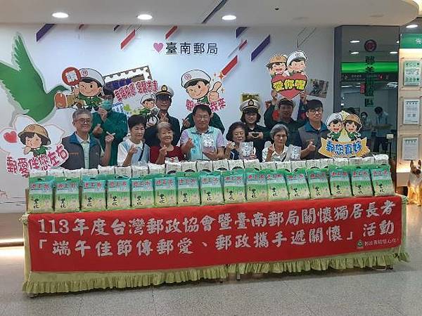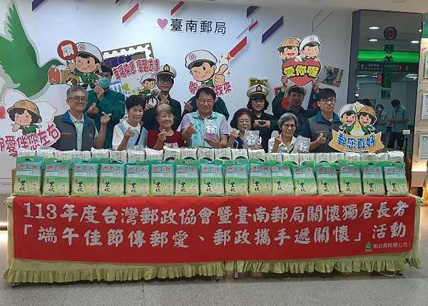 【柿子日報記者李玲/台南報導】值此端午佳節前夕,臺南郵局攜手台灣郵政協會,於本(6/5)日 上午9時30分假臺南郵局營收股舉辦「端午佳節傳郵愛、郵政攜手遞關懷」愛心行動,本次活動對象為臺南37區的獨居長者,會場準備了郵政i郵購上精選的『池上米』及『麻油薑細麵』共196份,藉由綠衣天使們將這些豐盛的禮品送達長輩手中。