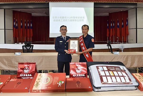 【柿子日報記者林易緒/台南報導】再過3天就是警察節了,臺南市政府警察局佳里分局今(12)日利用聯合勤教並舉辦慶祝113年警察節活動,會中由分局長劉全福表揚績優員工20名,並頒贈每位獲獎同仁獎狀1幀、禮券1份及禮品2份,表彰他們成為佳里分局員警表率,並期許所有同仁,在工作崗位均能再接再厲,克盡職責。