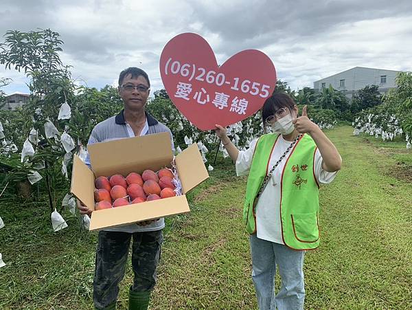「小崇ㄉ果園」果農李裕崇因曾照顧中風臥床父親8年之久,深刻體會照顧者的辛勞與重擔,從108年起連續6年都捐贈愛文芒果禮盒給創世義賣,即使在新冠疫情期間,果園收入受影響,也不曾間斷。李裕崇表示:「照顧臥床者是一條長遠的路,我走過,所以知道很辛苦。」「小崇ㄉ果園」採用草生栽培,不噴灑除草劑,使用人工除草與草共生的方式,友善土地與環境,栽種出無毒的愛文芒果。