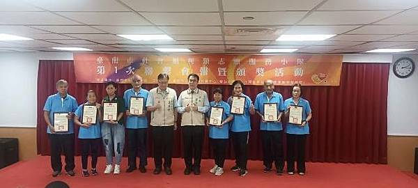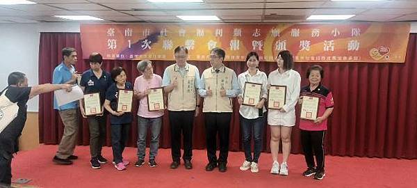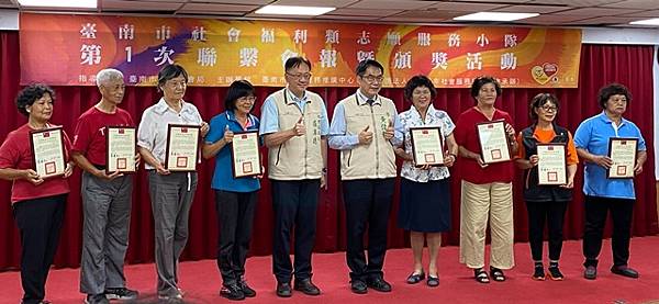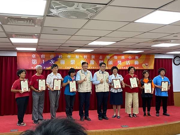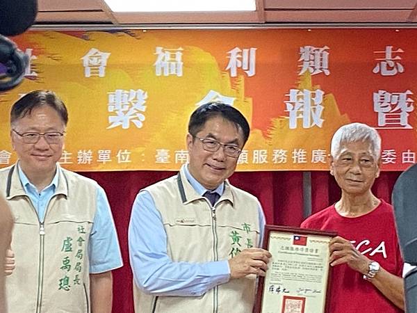 社會局盧禹璁局長說明今日表揚57位志工,其中社團法人台南市家庭關懷協會的81歲黃暉洋志工是這次出席者當中男性受獎者最年長者,黃先生於94年因太太的牽線加入協會志工,迄今已有18年的服務資歷,每天風雨無阻,早上8點半就到協會協助包便當的服務,透過黃先生18年來每天不間斷且細心地確保每一份便當的品質和數量,讓需要幫助的長者們都能夠準時收到熱騰騰的飯菜;黃先生表示,可不要小看了這份工作,因為這不僅是體力上的付出,更是精神上的責任。