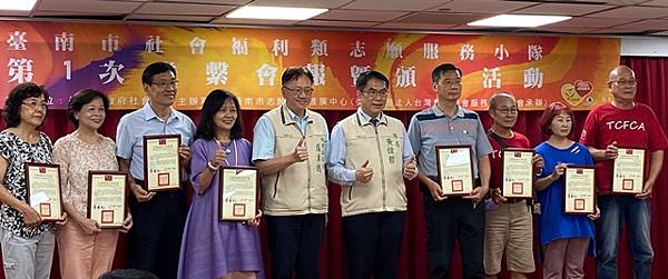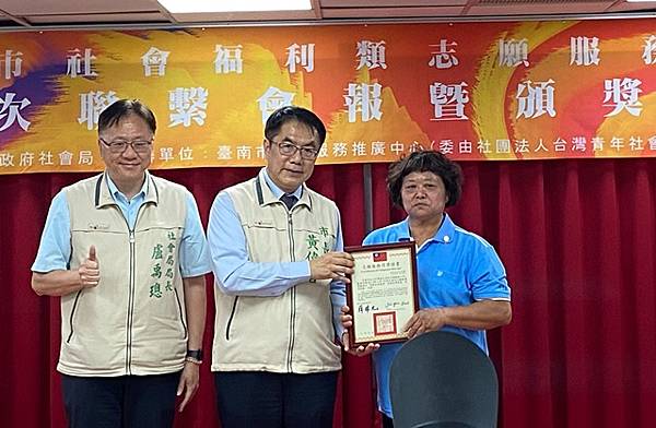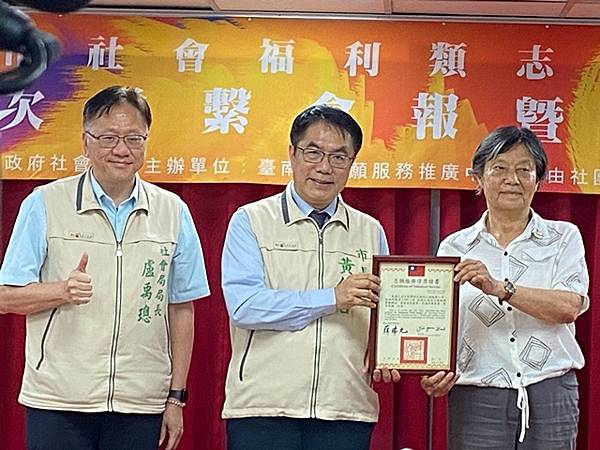 【柿子日報記者李玲/台南報導】台南市政府社會局今(17)日於永華市政中心10樓小禮堂辦理今(113)年度第1次社會福利類志願服務小隊聯繫會報,黃偉哲市長在社會局盧禹璁局長陪同下蒞臨會報現場,並親自表揚榮獲衛生福利部112年度志願服務金質徽章獎57位志工,感謝這些社福志工無私的奉獻付出。東區區長黃炳元、鹽水區長陳文琪、佳里區長林耿漢、蔡宗豪議員服務處代表亦到場出席參與。
