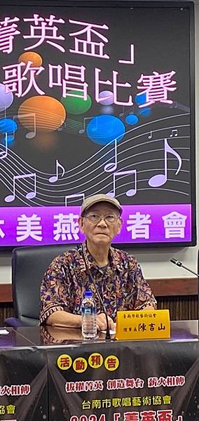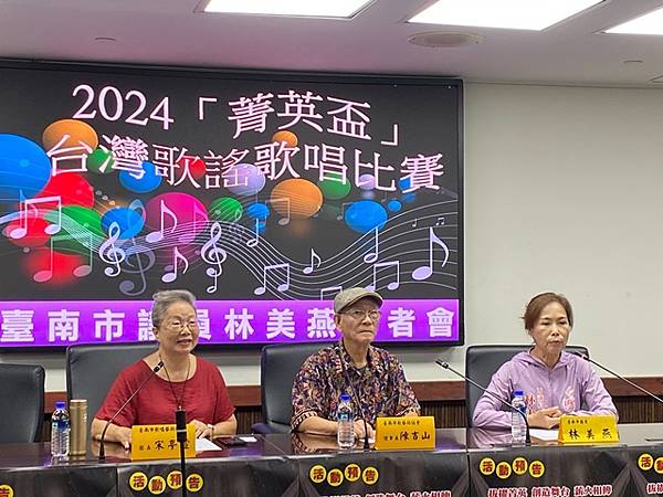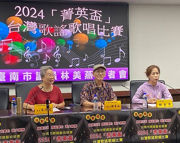 歌唱協會團長宋亭萱老師說,該會日前在歸仁文化中心舉辦台灣400歌唱活動,透過YT頻道播放實況,接著有多位會員在端午划龍舟會場演唱台灣歌謠,已讓更多民眾認識台灣歌謠的美好,所以爭取外界贊助經費,舉辦歌謠比賽,拔擢歌唱菁英。該會理事長陳富山則說,比賽會場歡迎未參賽的民眾來聆聽和鼓勵。
