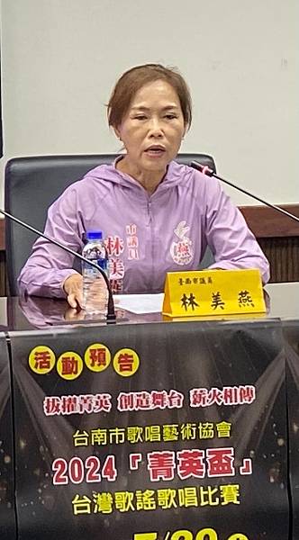 【柿子日報記者李玲/台南報導】台南市歌唱藝術協會為推展全民優質歌唱的風氣,發掘未來之星,舉辦2024「菁英盃」台灣歌謠比賽,冠軍獎金8千元;長年擔任該會顧問的市議員林美燕18日協助宣傳,邀請各地愛好歌唱的民眾能踴躍報名參賽。