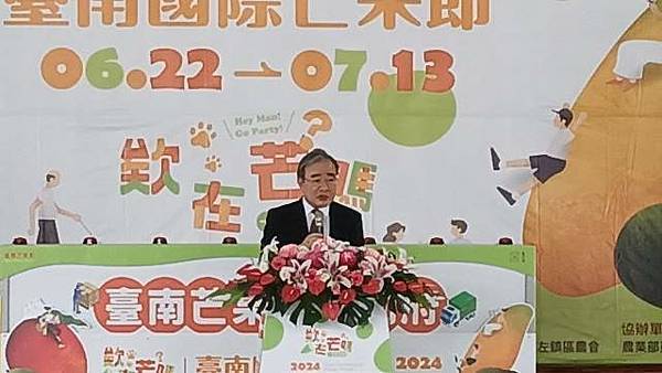 【柿子日報記者李玲/台南報導】今(22)日臺南市長黃偉哲、農業部次長胡忠一、農業部農糧署副署長姚志旺、中華民國對外貿易發展協會副秘書長周秀隆、臺南市農會理事長李文華、總幹事吳嘉仁、臺南芒果產區公所、農會、芒果節聯名店家,以及立委、臺南市議會議員等,並有日本友誼城市富士宮市市長須藤秀忠、水上町副町長茂木直人、水上町議會議員茂木法志、高崎市農政部農林課課長吉岡雄一郎等人率交流團參加,共同於走馬瀨農場鄭重宣告「2024臺灣芒果季-臺南國際芒果節」正式開幕,呼籲全國民眾夏天來了,就要來臺南芒果節玩、品嘗消暑芒果冰,還有眾多臺南知名飯店、烘焙坊、甜點店、手搖飲以及產地農會及果乾品牌推出多元芒果產品,歡迎一起來夏季臺南芒果之旅。