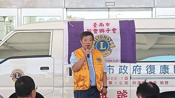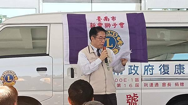 阮連通會長表示,新豐獅子會一直以來都懷著取之社會、回饋社會的無私奉獻精神,經常舉辦大型捐血活動,亦捐款及捐物資關心許多弱勢團體,該會非常關心身心障礙者,過去曾捐出2輛復康巴士予臺南市政府,此次再次捐出第3輛復康巴士,希望捐贈的復康巴士持續幫助更多行動不便之身心障礙者外出,提升身心障礙者就醫、就業及社會參與等,也藉此次活動邀請更多善心人士共同加入捐贈行列,造福更多身心障礙者,讓這份「善」的力量延續下去。