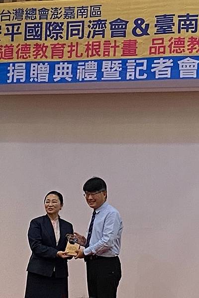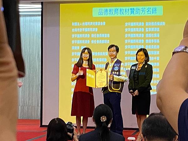 今天的捐贈儀式,與會貴賓包括台灣國際同濟會長張維清總、國際同濟會澎嘉南區主席許金樹、國際同濟會澎嘉南區候任區主席郭添裕、國際同濟會澎嘉南區第49屆候任區主席王秀絨、安平國際同濟會長吳佳琪、台南女會長林月琴、台南縣會長張明湯、教育局督學陳思瑀,以及安平同濟會歷任會長等,場面相當熱鬧。