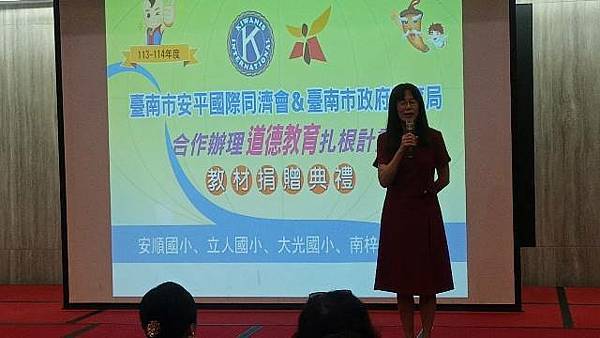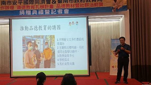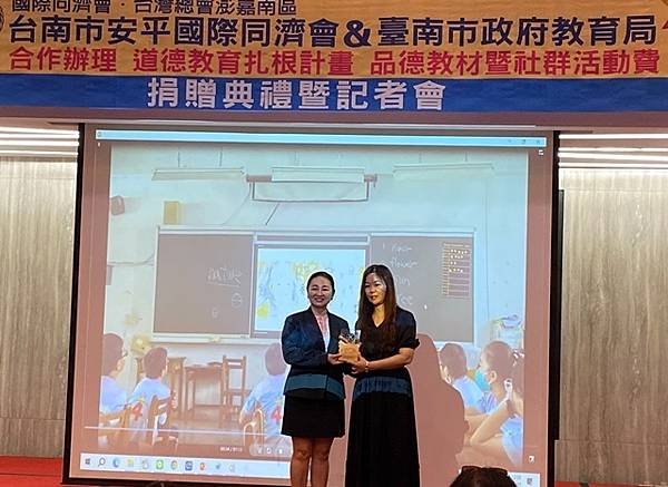 今年安平國際同濟會捐贈的動畫教材,更因應疫情升級為線上公播版,與台南市政府教育局再次合作辦理品德教育扎根計畫,期許透過捐贈動畫教材,並結合十二年國教新課綱課程核心素養導向教學,與南市大港國小、大橋國小、二溪國小及竹門國小共同辦理教師社群計畫,鼓勵老師持續推廣各校,將品德教育列入教學中。