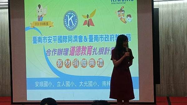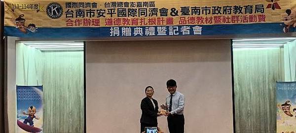 安平國際同濟會於去年開始,捐贈的《小乾坤》及《悠遊字在》兩套取材,內容以中華文化教材,結合現代生活故事,以3D動畫科技的方式呈現,生動有趣的劇情深受師生喜愛,這兩套教材萃取傳統文化中的智慧,傳達孝親敬長、知禮守信等做人處事的道理,讓孩子在有趣的動畫影片中,淺移默化達到建立學童良善的品德,打造健康社會的根基,讓許多學子受益良多。