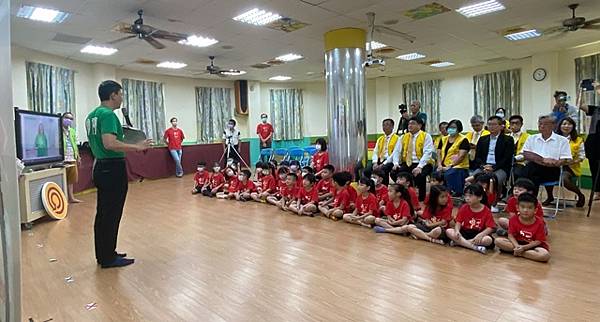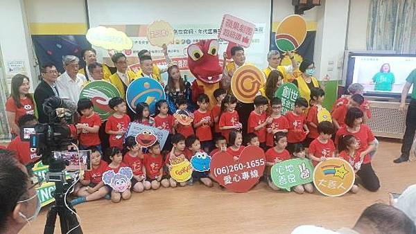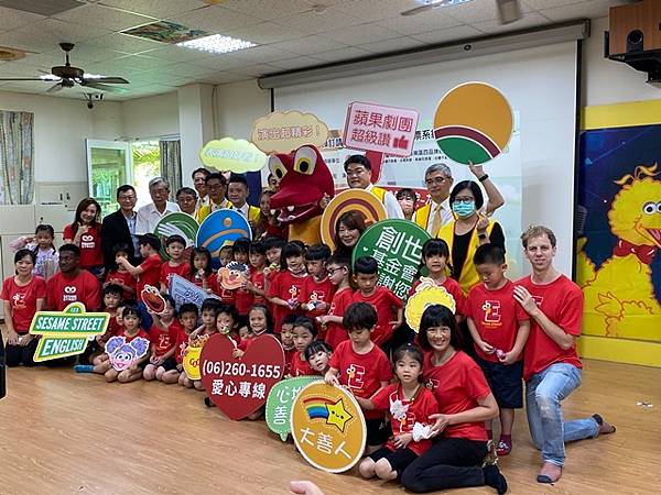 7/3(三)上午,永慶不動產經管會呂啟綸會長,台慶不動產謝旺瑋會長、有巢氏房屋許品謙會長與永慶房產集團台南區四品牌、所有店東/店長們,攜手蘋果劇團方國光團長到凱仕蘭美國學校-芝蔴街美語(凱兒分校) 為兒童劇做宣傳。人上人文化事業股份有限公司林義德執行長帶領孩童們熱情迎接,並帶來一段精彩的熱帶風情草裙舞表演。今年度協辦單位蘋果劇團與創世基金會為了籌建創世花蓮建院,特別將經典的冒險歌舞劇《抓龍特攻隊》重整編排,更重新打造劇中相當吸睛的「無敵大魔龍」,讓此次巡演不同凡響。孩子們看到蘋果劇團的表演團員盛裝到場,大家都相當興奮,雀躍不已。