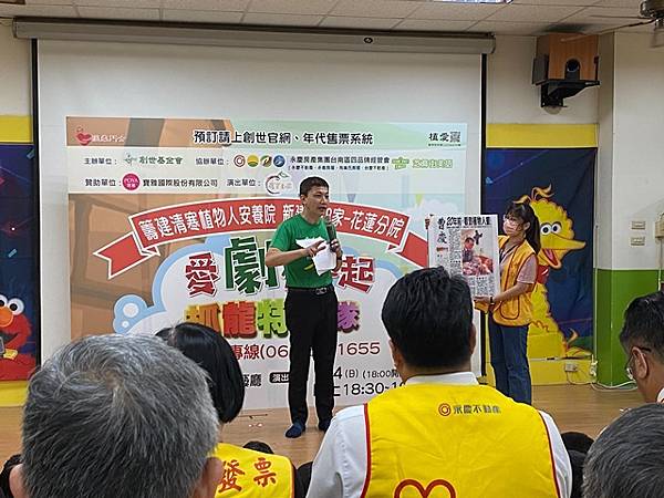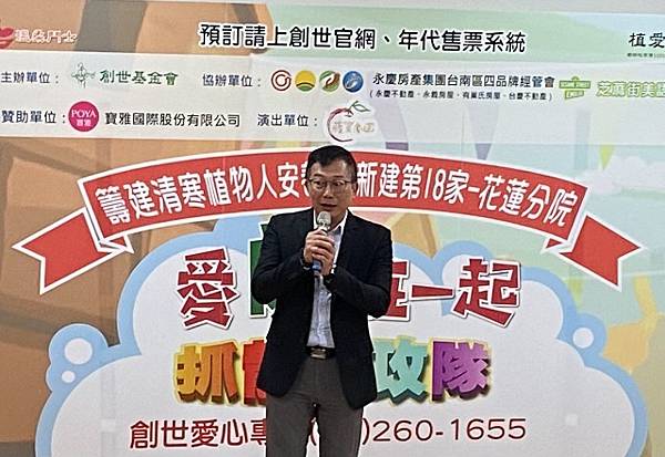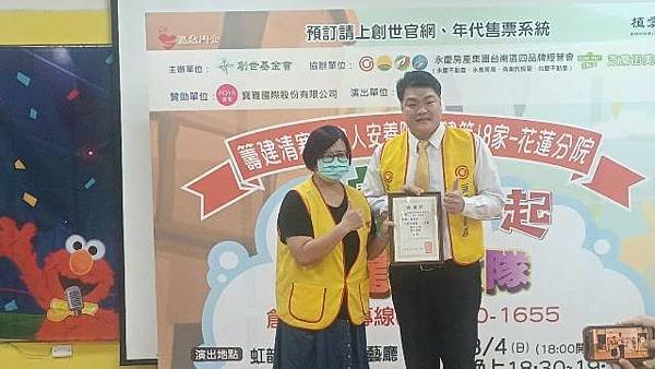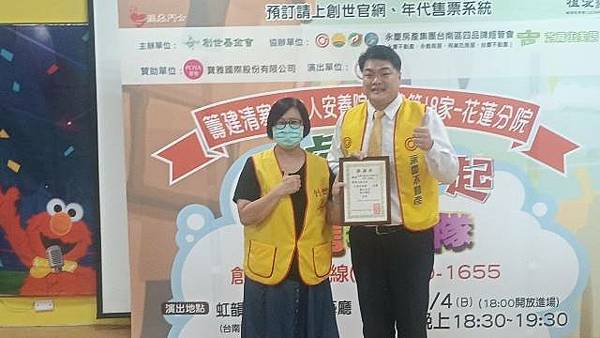 台南分院孫淑媛院長表示:「此次活動邀請創世植物人家屬及在地育幼院、老人團體、弱勢團體能親臨現場,感受舞台劇帶來的魅力,由於目前認助不到一成,大力邀約在地企業、團體合力認助,每張捐款600元,幫助創世花蓮院籌建經費,不但讓花蓮在地植物人能返家安養。還可以二次公益轉贈給弱勢家庭,讓他們也可以到劇場觀賞精彩的演出。欲認助票券可至創世基金會官網: https://reurl.cc/vaj66l、年代售票系統: https://reurl.cc/xaj6vz,或是電話洽詢。憑票入場,自由入座,愛心專線:06-2601655分機17。