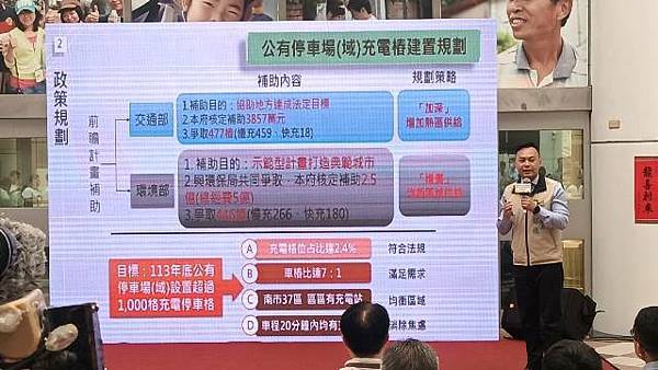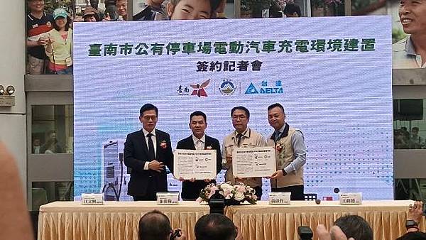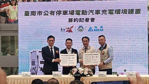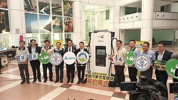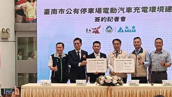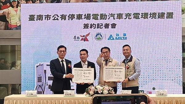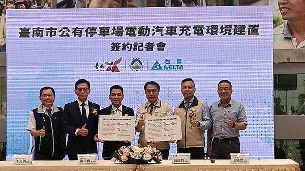 【柿子日報記者李玲/台南報導】台南市政府自111年發布「2050台南淨零路徑」以來積極推動落實減碳,今(8)日舉行「台南市公有停車場電動汽車充電環境建置簽約」記者會,市長黃偉哲宣布成功爭取中央經費2.5億元補助,將於全市37個行政區總計202處場域建置充電站,共包含90座(180槍)快充槍、266槍慢充槍,將打造台南成為全台電動汽車充電示範場域。