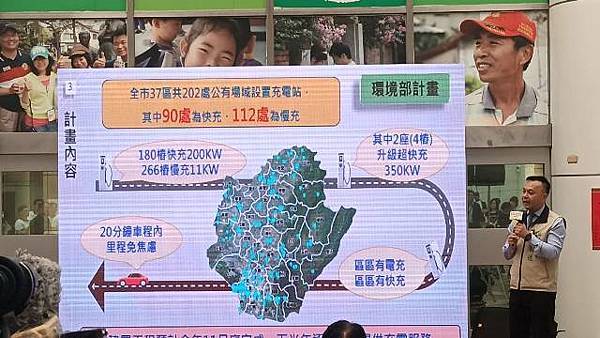 市長黃偉哲表示,台南市是發展綠色載具重要據點,以往因過了中部之後較少充電樁,導致電動車主對到訪南部卻步,設置充電樁之後可改善車主們的充電焦慮,也提升北部民眾開車來訪南部意願,讓民眾的旅程更無遠弗屆。這次計畫部署於全市202處公有場域廣設充電樁,完整覆蓋全台南市37個行政區,達成全國唯一區區有充電站的目標。另外,更將90座快充設備均衡分布各行政區至少有一座,也是全國唯一區區皆有快充站的城市。不只方便外地遊客也造福當地電動車主,大幅改善充電效率並營造友善供電環境。
