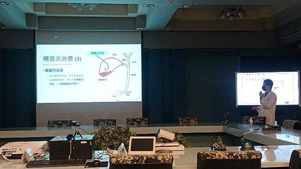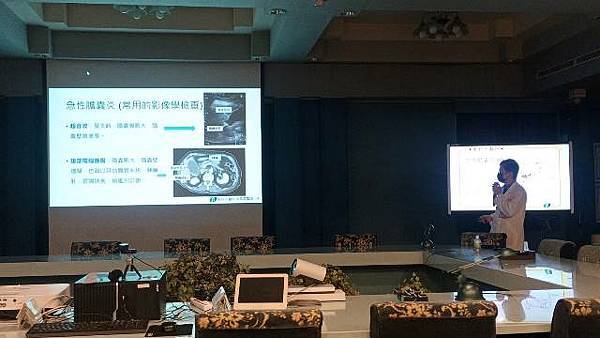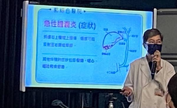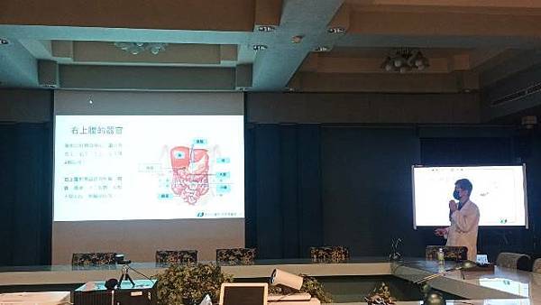 腹部以肚臍為中心,畫分為4個區域。右上腹的對應器官為肝臟、膽囊、膽道、十二指腸、右腎、大腸右段、胰臟頭段等。對右上腹痛,須經病史、症狀、檢驗、檢查做疾病的鑑別診斷。此次記者會著重在膽囊炎的介紹。