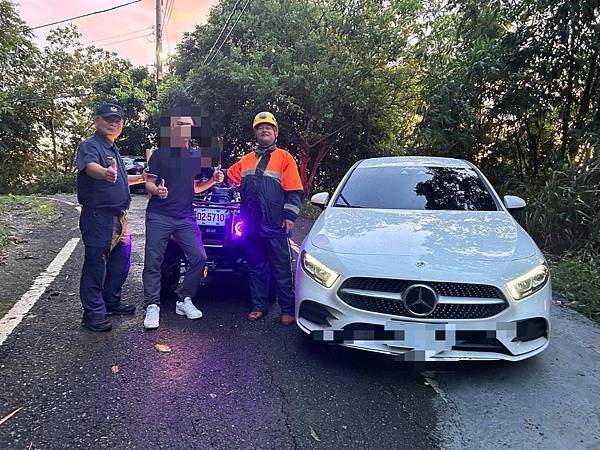 【柿子日報記者林易緒/台南報導】劉姓虔誠信眾於前(8)日下午由臺南市永康區駕駛自小客車至本轄東山區孚佑宮參拜,因路況不熟,誤信導航將其引導至偏僻山區產業道路,進退不得,午後山區下起滂沱大雨,遮蔽視線,此時山區產業道路不僅路面濕滑亦落石不斷,且該路段地勢顛簸、狹窄,致其車輛受困於上坡處,動彈不得。案經劉民撥打110報案,請求警方協助,白河警分局東原派出所員警獲報後立即冒雨前往東山區孚佑宮附近產業道路搜尋受困之劉民及車輛。