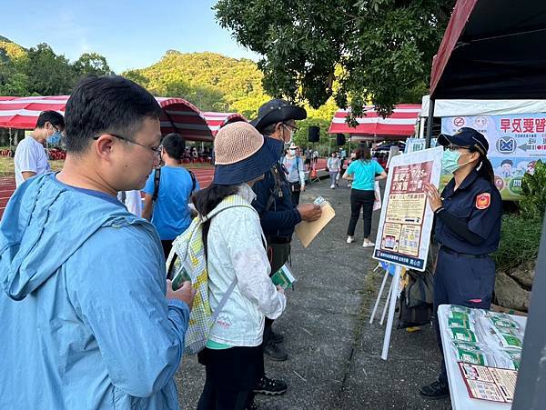 今年臺南市政府警察局白河分局結合臺南市政府勞工局在仙草國小關嶺分校辦理勞工健走活動,於7月14日(星期日)上午時段,邀請現場民眾踴躍下載「警政服務APP」,並解說APP中查詢防空避難設施操作方式,只要出示下載成功畫面,立即免費贈送由東山永良老頭家所贊助提供的「地瓜葉茶包、冬瓜茶磚」好禮。因應青少年暑假有更多時間接觸校外事物,警方藉此活動宣導青少年要遠離毒品、幫派、詐騙行為,不當場所勿流連、加強網路安全觀念、注重個人隱私、防制兒少遭性剝削。