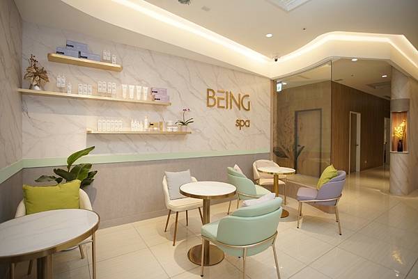 BEING spa台南南山館承續品牌簡約白淨的主基調,從「時尚」兼具「質感」的設計理念出發,迎賓區選用淺色大理「石」紋元素,搭配金色邊修裝飾,點綴出高貴低調的輕奢;貴賓休息區以生氣盎然的婉約繁花,輔以光影交織的綠茵,結合芬芳恬靜的舒暖香氛,營造「自然國度」;在快適步調的都會中,以專業細膩的按摩手法啟動身心放鬆,開啟身.心.靈的舒緩旅程,徹底為貴賓洗滌疲憊,解放五感、尋回六覺。