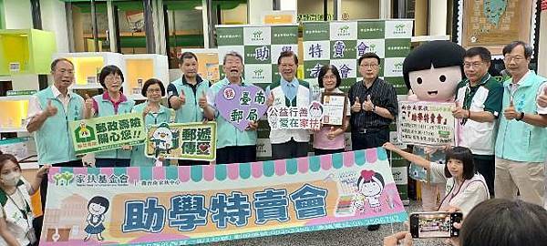 【柿子日報記者李玲/台南報導】臺南郵局力挺南北家扶基金會,同步於7月16日、17日舉辦助學義賣活動,除慷慨捐贈物資外並提供轄下成功路郵局、永樂郵局、原佃郵局、安南郵局、新營郵局、白河郵局、佳里郵局、善化中山路郵局、永康郵局、歸仁郵局及學甲郵局,總計11間支局的營業廳或騎樓空間無償提供義賣活動使用。本次義賣旨在幫助弱勢家庭學童募集助學金。