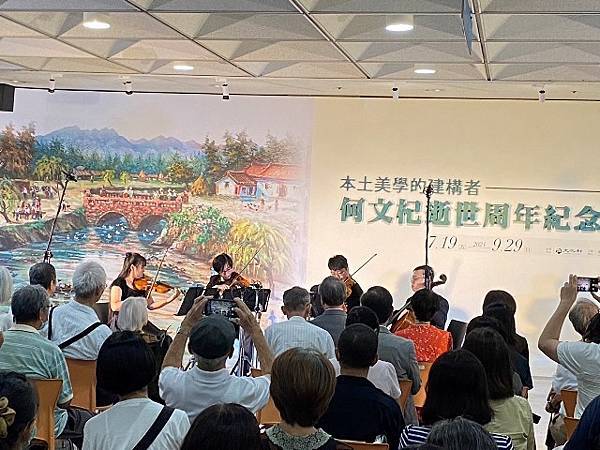 【柿子日報記者李玲/台南報導】為致敬臺灣鄉土繪畫先驅藝術家何文杞,文化部所屬國立臺南生活美學館辦理「本土美學的建構者─何文杞逝世周年紀念展」,今(19)日記者會,由臺灣藝術家交響樂團四重奏以黃昏的故鄉一曲揭開序幕,文化部長李遠、國立臺南生活美學館長黃瓊瑩、中央通訊社董事長李永得、何文杞夫人邱金菊、何文杞公子何琦偉、策展人國立成功大學名譽教授蕭瓊瑞、前國立臺灣文學館長鄭邦鎮、臺南市政府文化局長謝仕淵、國立臺北藝術大學名譽教授林保堯、國立屏東大學教授黃冬富等各界來賓共同參與。