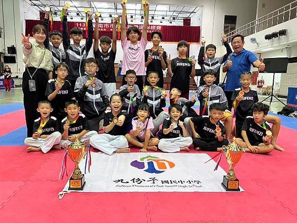 【柿子日報記者許明治/台南報導】113年台南市長盃品勢錦標賽暨台南市青少年代表隊選拔賽,業於東山國中圓滿落幕。九份子國民中小學共獲8金9銀16銅的佳績,並連續兩年勇奪國小團體冠軍、國中團體冠軍,成為這次賽會的最大贏家。