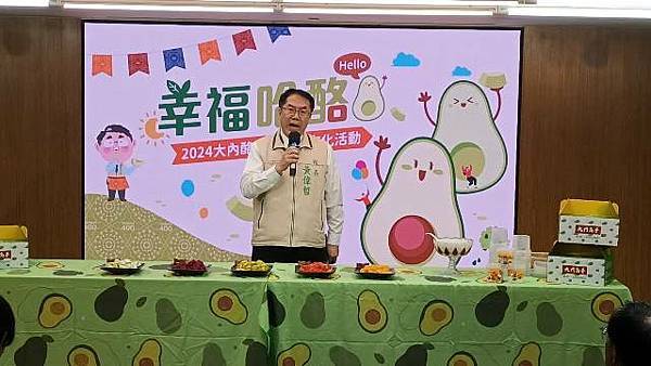 【柿子日報記者李玲/台南報導】臺南大內適逢酪梨產季,為幫助農民行銷推廣,今(22日)特於臺南市政府永華市政中心辦理「2024大內酪梨節產業文化活動」記者會,由市長黃偉哲等多位長官親臨現場一同宣布活動正式開跑,現場市長與多位貴賓也一同到場力挺大內酪梨,並一起製作「幸福酪優優」的酪梨優格甜點。7月28日大內酪梨節當日也會限量販售,想要一嚐大內健康又美味的酪梨好滋味記得把握這難得的機會。