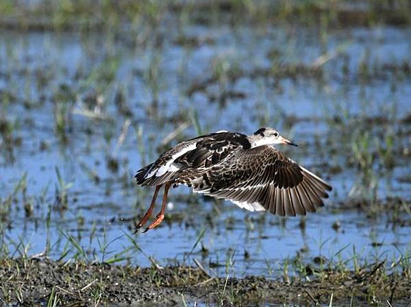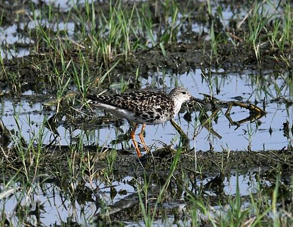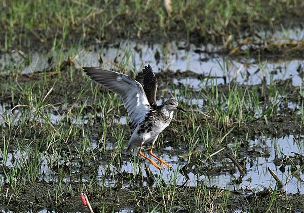台南市生態保育學會副總幹事黃永豐表示,自上月底至今己發現三隻不同個體的台灣少見的過境鳥「流蘇鷸」,因此在北門溪底寮、二重港的農地,今天己經至少聚集20幾台車30多炮拍攝少見的過境鳥「流蘇鷸」。