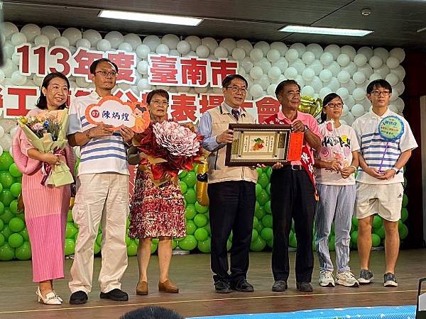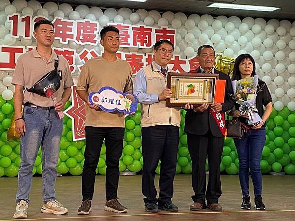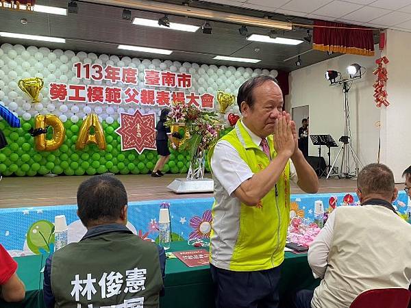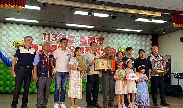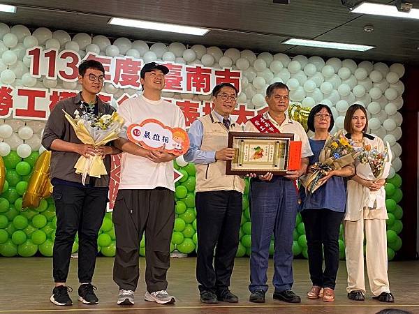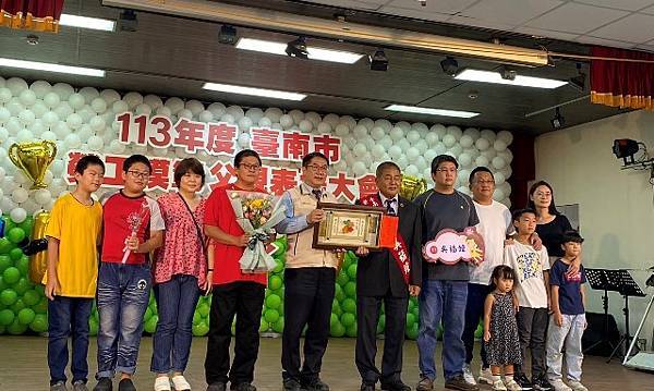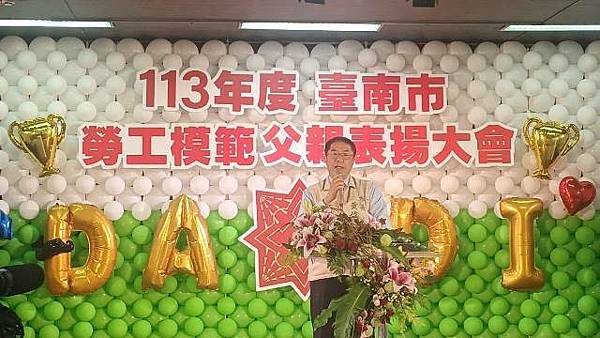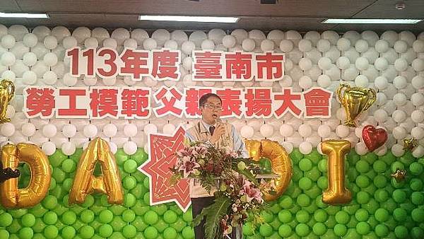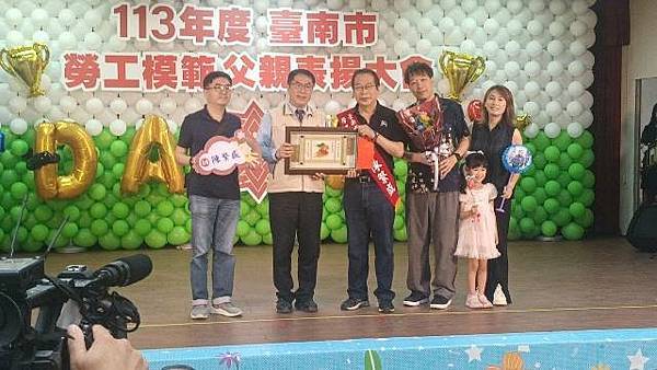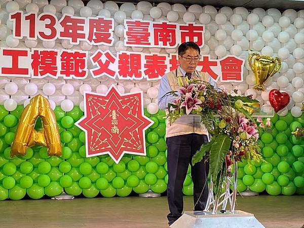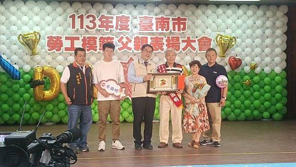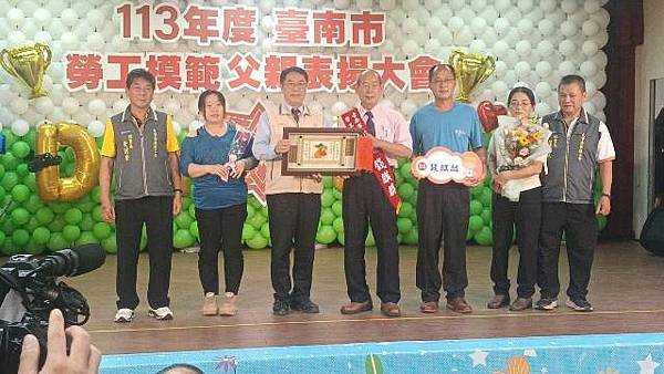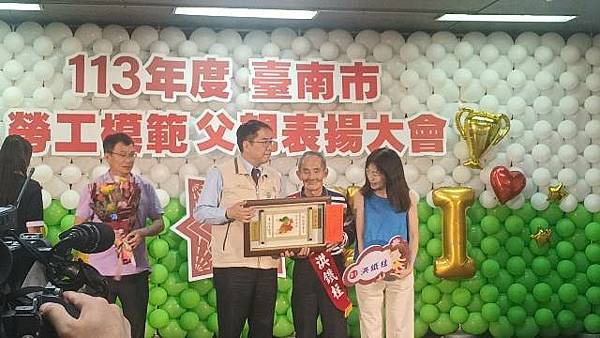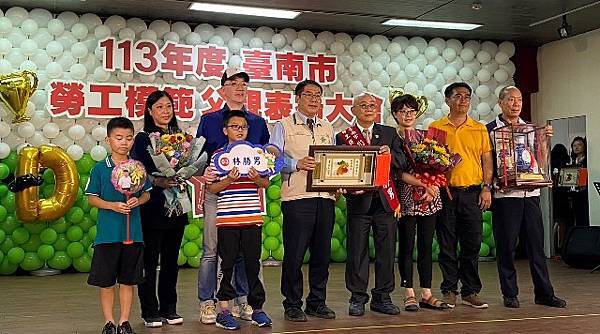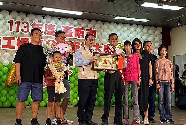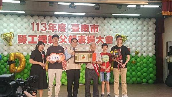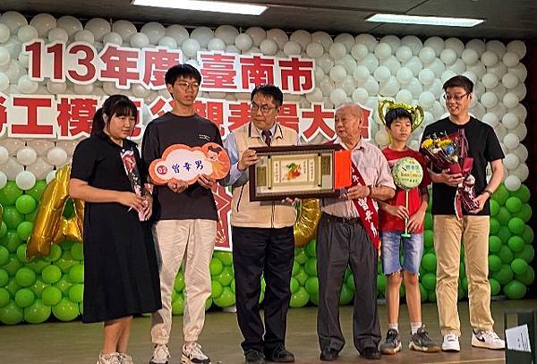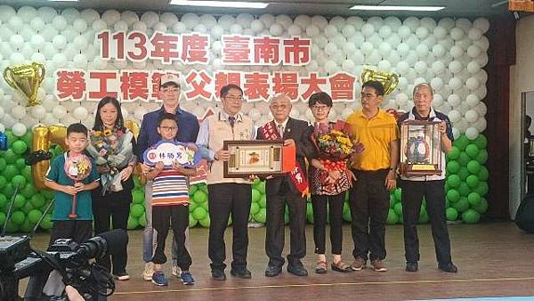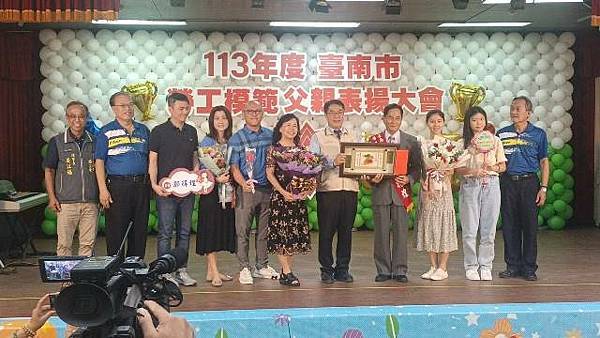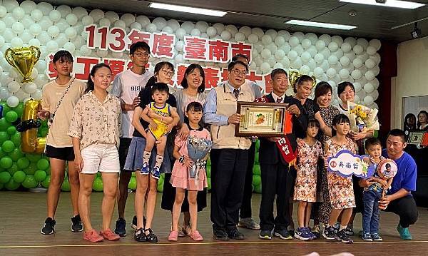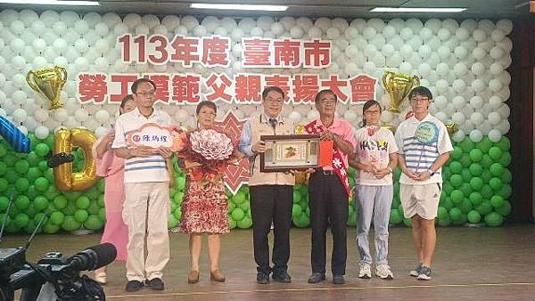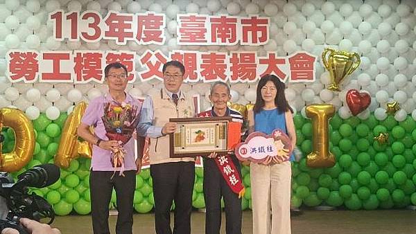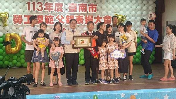 【柿子日報記者李玲/台南報導】台南市勞工局今(4)日於善化啤酒廠二樓大禮堂舉辦113年勞工模範父親表揚,台南市長黃偉哲為了肯定當選人的偉大奉獻,特別親自頒發獎牌、獎金給當選的勞工模範父親,並親切地與當選人及其親友團合影,感謝勞工模範父親們對家庭的無私付出及對社會的熱心貢獻,讓「希望家園」的正能量持續擴散。