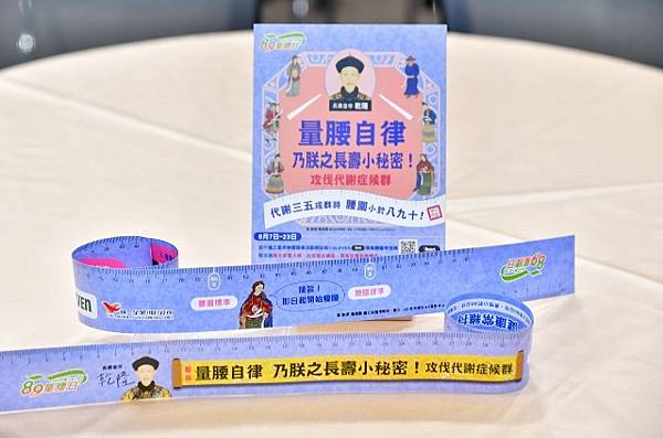 為了讓量腰也成為氣質活動,基金會今年特地選擇故宮OPEN DATA名畫「清 謝遂 職貢圖」為圖素,將卷一~二的六位特色人物都畫上優雅的量腰動作,來呼應長壽皇帝乾隆號召大家以「量腰自律」討伐代謝症候群。還特地打造成四公分寬的「清 謝遂 職貢圖」腰圍量尺,讓大家可邊量邊賞畫,8月7起即可於全國7-ELEVEN免費索取。另17家統一集團關係企業(如附表)更會發送獨家「清 謝遂 職貢圖」的明信片衛教卡,同樣內附職貢圖尺,總計全國將發送超過50萬條,送完為止。