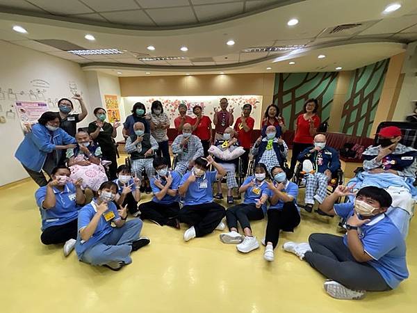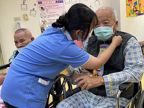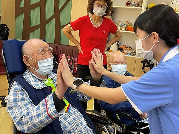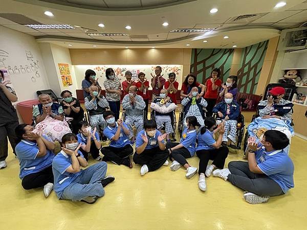 另外,護理之家也貼心準備住民爺奶喜愛的杯子蛋糕與軟法麵包供大家享用,即使長輩們不是在自宅,也同樣享有家的感覺。現場師生、工作人員一句接一句響亮的「爸爸節快樂」和擁抱,讓住民們是又驚又喜,笑得合不攏嘴。藉由這股溫馨的力量,把大家的心凝聚在一起,慶祝活動中充滿過節的歡樂氣氛,為所有的父親們獻上平安喜樂-祝福之心。