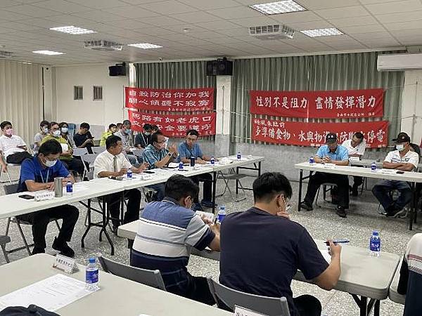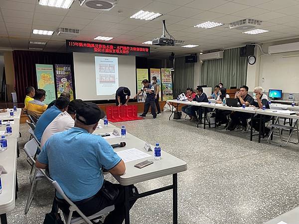 此外,會議中亦強調防水擋板的推廣與使用,劉主任秘書志琮特別呼籲各里提高對防水擋板的認識與使用率。農業及建設課課長陳俊良現場講解了防水擋板的組裝及使用要領,以加強社區防災意識。會議最終達成多項共識,區公所也承諾將持續強化防災設施管理及操作人員培訓,提升整體防災能力。