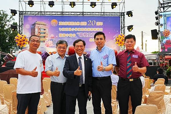 出席活動嘉賓包含黃偉哲市長、陳亭妃立委、林俊憲立委、七股區長李佳隆、市議員陳昆和、蔡蘇秋金、方一峰、謝舒凡、各級名代助理、前七股區長現任雲嘉南風景區管理處副處長莊名豪、七股區里長聯誼會里長陳中正、黃仙立、陳博靜、蘇榮標等十數名;及社區發展協會理事長、佳里商圈前理事長陳駿逸賢伉儷、正億棉廠股份有限公司董事長吳松儒、K S S企業股份有限公司邱平裕總經理、佳里奇美醫院專員林正雄、台灣首護文創林國偉總經理、雲嘉南濱海產業文化觀光協會理事長戴泳明、七股區調解委員會主席楊輝容、百興藥局蔡建正藥師、大台南家長協會李偉宏前理事長、北門高中校長吳俊憲、昭明國中林彥伯主任、大北門區各國中小學校長主任老師,以上共計數百人共襄盛舉,溫馨感動圓滿完成20週年紀念晚會活動