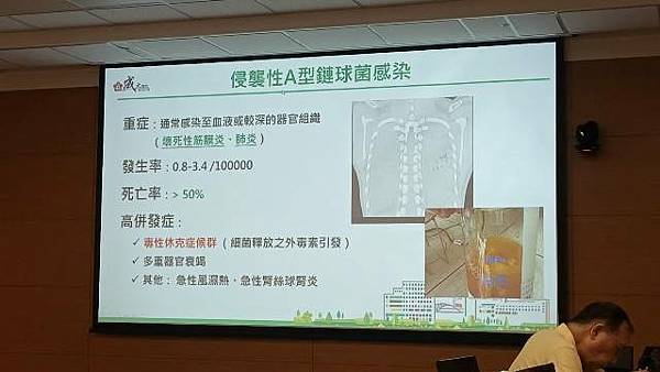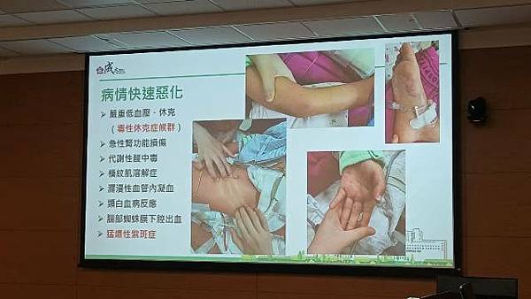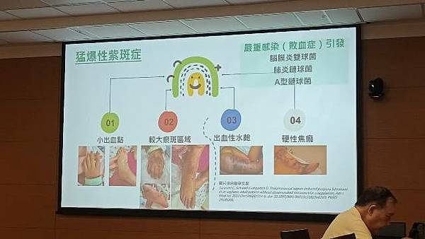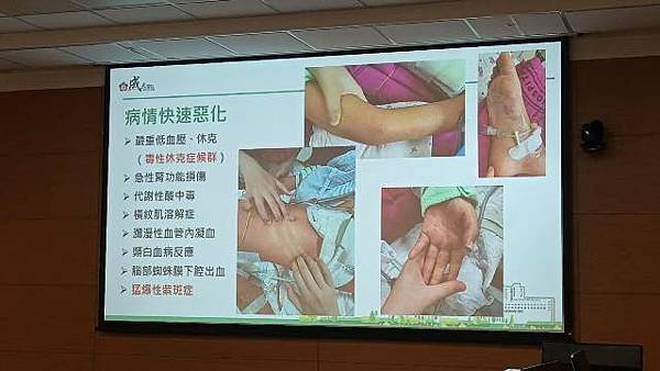成大醫院小兒感染科主任沈靜芬醫師說明,A型鏈球菌感染常見的臨床表現包括:咽喉痛、發燒、皮疹,少數患者會伴隨嘔吐及腹部不適,當感染擴散至肺部時,可能出現咳嗽的情形。特別需注意的是,少數A型鏈球菌感染患者會進展為重症,而當發生意識不清、昏迷、持續低血壓、皮膚變色或出現紫斑、呼吸困難時,可能是重症的早期症狀。A型鏈球菌釋放的外毒素會干擾身體正常功能,導致少數嚴重感染併發毒性休克症,引起低血壓和多重器官損傷。若患者進展至毒性休克症候群,病情惡化速度極快,且死亡率超過50%。