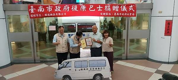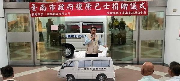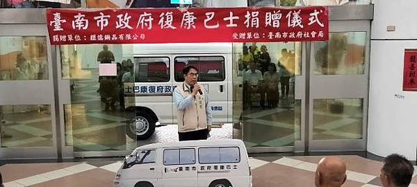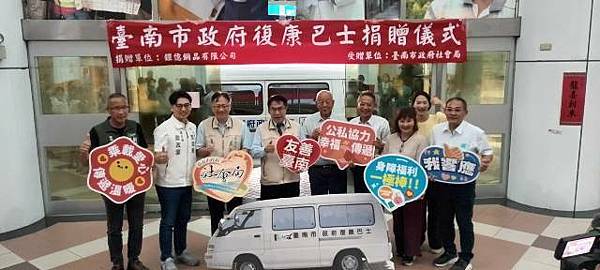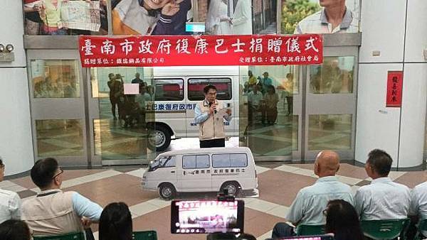 社會局長盧禹璁表示,提升身心障礙者生活品質為臺南市府重要施政,市府團隊長期致力營造無障礙友善環境。臺南市目前有155輛小型復康巴士及1輛中型復康巴士,每年平均可提供25萬趟次以上服務,這些車輛多數由民間企業、團體或市民個人所捐贈,市府將捐贈車輛使用於汰換年限已逾10年以上之老舊復康巴士,以保障使用民眾之行車安全。