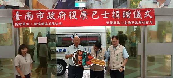 市長黃偉哲表示,鎧億鋼品公司做善事就像鋼鐵一般堅定,一直持續從事社會公益,南市目前總共155輛復康巴士,感謝鎧億鋼品公司善心捐贈復康巴士提供服務,也謝謝曾培雅議員協助媒合鎧億鋼品公司支持社會福利方面,復康巴士持續產生更多服務量能,提供身心障礙及行動不便朋友就醫、洽公或者有需要的協助,期盼公私協力將社會福利工作做到好,讓臺南更溫暖。