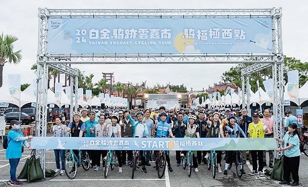 【柿子日報記者林易緒/台南報導】由交通部觀光署雲嘉南濱海國家風景區管理處(以下簡稱雲嘉南管理處)所主辦的「騎福極西點」自行車活動今(7)日在臺南市北門區南鯤鯓代天府盛大開騎,上午六點不到,來自各地近千位民眾及車友已陸續報到,現場交通部觀光署主任秘書方正光、臺南市政府觀光旅遊局專門委員丁玲琍、雲林縣政府文化觀光處科長李嘉和、台江國家公園管理處代理站長陳少穎、七股區公所秘書黃瑞琳、國軍南部地區人才招募中心副主任陳永正、南鯤鯓代天府總幹事侯賢名等貴賓親臨開幕,另外立法委員陳亭妃、立法委員賴惠員辦公室吳文榮秘書、臺南市議員謝舒凡、陳昆和議員辦公室邱清順秘書、臺南市蔡秋蘭議員辦公室黃福得特助、蔡蘇秋金議員辦公室周憲塘助理等貴賓親臨開幕,以及雲嘉南濱海產業文化觀光協會理事長戴泳明、臺南市北門產業文化觀光發展協會理事長洪有志、臺南市馬沙溝觀光休閒協會理事長陳啟宗、台南市生態旅遊發展協會總幹事黃瑞興、好美農漁產業有限公司董事長曾進成等觀光產業代表也一同到場為民眾打氣,還有人氣美女包括民視GOGO TAIWAN主持人Windy、單車網紅小D、布拉魚、台南在地Uni Girls統一獅啦啦隊的一七和Maggie也一同現身,帶領車友一騎Bike訪雲嘉南。