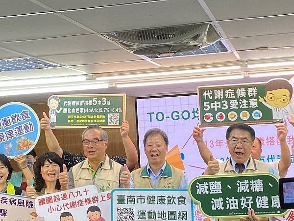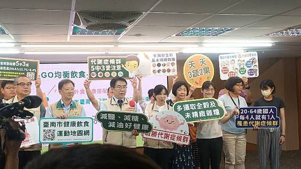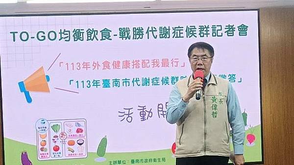 【柿子日報記者李玲/台南報導】現代人習慣外食,雖然方便但可能帶來肥胖或增加罹患代謝症候群的風險,臺南市政府今(18)日舉辦「TO-GO均衡飲食-戰勝代謝症候群」記者會,由市長黃偉哲宣誓並呼籲全體市民一起行動,正視關注自我飲食習慣,齊心戰勝代謝症候群,共同守護屬於自己的健康。市府也推出有獎徵答活動,提供腳踏車、藍牙體重體脂計、藍牙血壓計與智慧手環等好禮,鼓勵市民養成日常運動的良好習慣。