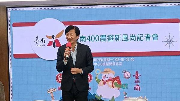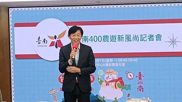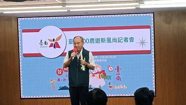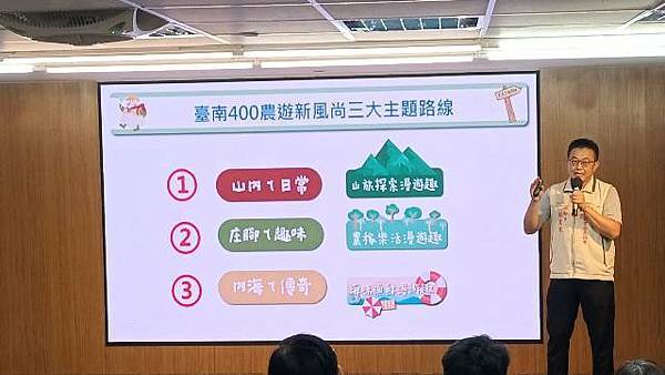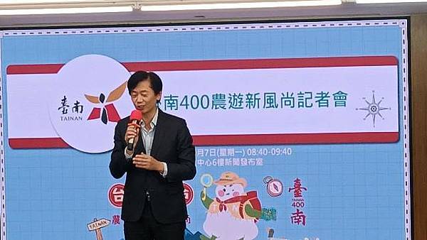 台南市長黃偉哲表示,近年來遊客偏好深度及秘境遊程,特色農業旅遊逐漸成為旅人來台南遊玩的新選擇,農業局舉辦2024「台南400農漁地景藝術節及永續農業主題展」系列活動之農遊新風尚計畫,搭配農曆節氣、農業及遊憩資源、景點、美食等旅遊要素,規劃出獨特且富有趣味的農遊路線,讓民眾能體驗台南農業文化,例如洗蓮藕粉、割稻飯、養蚵食魚教育及輕食蒲燒鰻魚手捲體驗等。