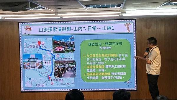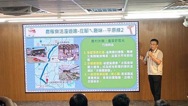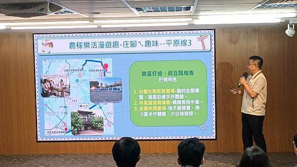 農業局說明,這次農遊行程結合台南市農村再生社區、休閒農業區、休閒農場、特色農業旅遊場域及農業相關業者,一共串聯27家以上農業場域推廣農村遊程,「山、海、平原」三大主題九大遊程分別為山線-山旅探索漫遊趣-山內ㄟ日常:蓮香遊湖 鴨蛋手作樂、佳藕添成 東山好時光、山村美味 果然醬最好;平原線-農稼樂活漫遊趣-庄腳ㄟ趣味:鵝米味香 藍晒有魅力、農村米樂 香草好風光、鵝蛋好繪 麻豆飄柚香;海線-海味漁鮮漫游趣-內海ㄟ傳奇:美好鹽續 潟湖嚐鮮蚵、亮哥鱻品 七股好遊趣、蚵學手作 美味國姓魚。