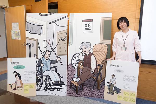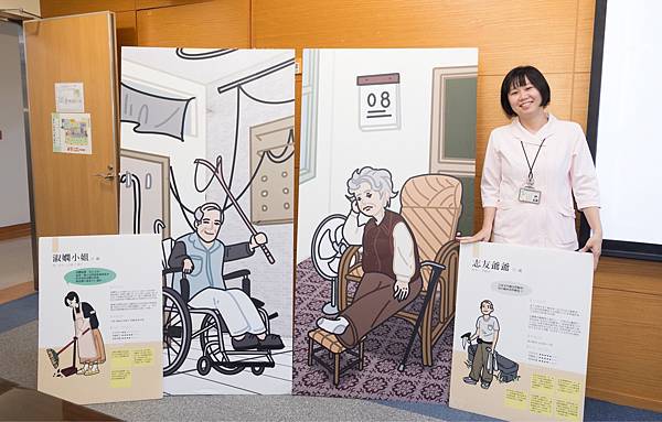 高齡照護組游詠晨副護理長表示,護理部開創不同的教學模式,幫助護理師拓展照護的視角,並與跨領域專業攜手創新與激盪,如:高齡照護教育研究團隊、照護服務設計團隊、多媒體數位課程製作團隊等,透過這些合作團隊,讓教學變得更有趣,也更貼近護理師的需求。