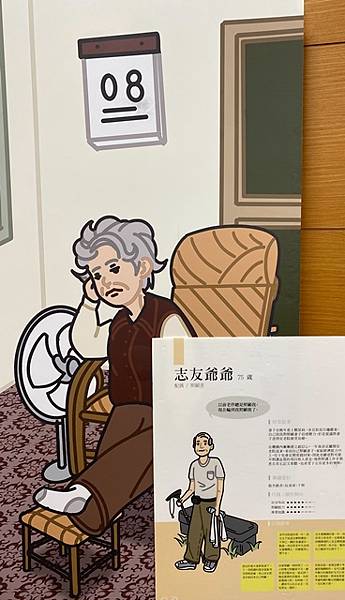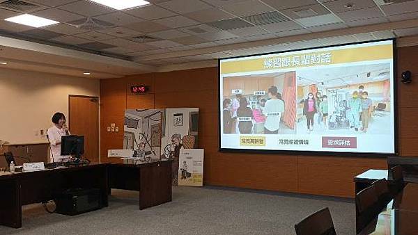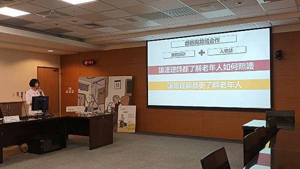 高齡照護工作小組在教育訓練中導入服務設計的概念,第一階段先建構高齡人物誌,透過彙整及歸納照顧現場常見高齡者的特性,創造多位半虛擬的的典型案例,讓護理師能認識各種高齡者的樣貌。第二階段結合標準病人,參考人物誌的背景及情境實際演出,舉辦工作坊讓護理師進行對話、評估與擬訂照顧計畫,學習發掘高齡病人的核心需求。