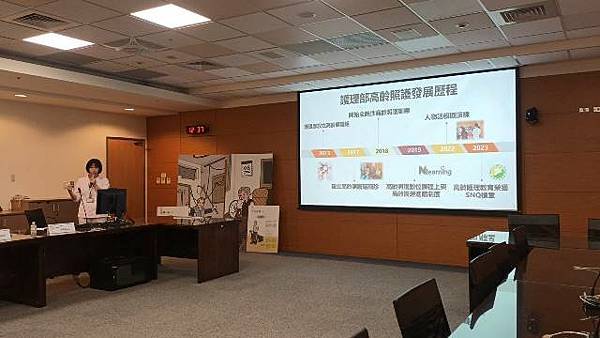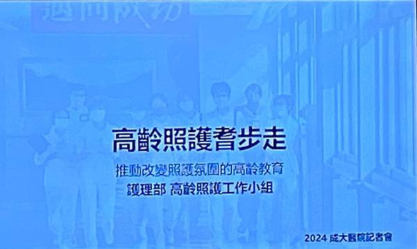 成大醫院護理部成立高齡照護工作小組多年,透過高齡專責護理師及個管師推動護理師的高齡照護教育訓練,發展多項創新教學模式,包含:線上學習小教室混成學習、標準病人訓練工作坊、高齡照護大會考與互動式出院準備服務情境演練等,疫情期間持續製作高齡照護線上課程教材,共拍攝70多堂課程影片,讓教學和成長不受時間及地點限制。護理部也建構高齡照護進階制度,協助培養護理師成為照顧老年人的專家。