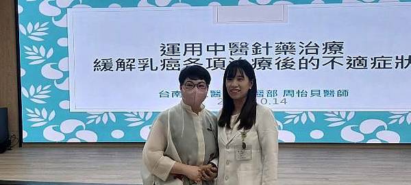 【柿子日報記者李玲/台南報導】49歲余小姐於4年前診斷出第一期右側乳房腫瘤,接受右側局部乳房切除、前哨型淋巴切除術、化學治療、放射線治療及賀爾蒙治療。自化療開始後出現許多副作用,如腸胃不適、手足症候群、四肢感覺異常、口腔粘膜炎、疲倦、嘔吐、食慾不佳等。雖然有部分症狀於化學治療停止後減緩,但有許多不適症狀仍持續。經台南市立醫院中醫部周怡貝醫師,依個人體質以中藥與針灸治療,余小姐不適症狀改善許多。