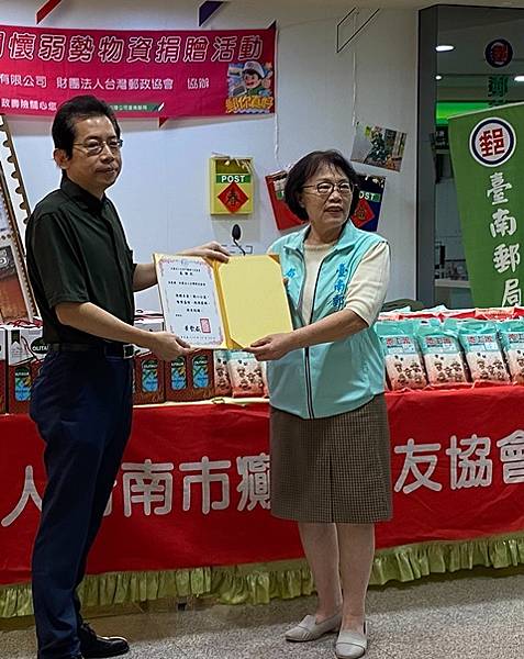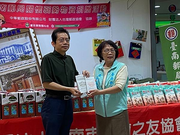 【柿子日報記者李玲/台南報導】臺南郵局與財團法人台灣郵政協會、中華郵政股份有限公司10月17日於成功路郵局營收股舉行物資捐贈記者會,送愛到社團法人台南市腦性麻痺之友協會及社團法人台南市癲癇之友協會,期望能散撥愛心拋磚引玉,引起社會大眾對於弱勢族群的重視。