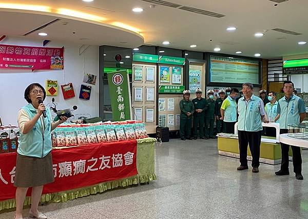 \癲癇協會黃欽威理事長帶領約7位會員一同出席,於會中特別致贈感謝狀,感謝台灣郵政協會及中華郵政公司發揮愛心,並肯定郵政對社會公益的付出。這些會員受限於身體病痛缺陷,僅能從事簡單的工作,但仍致力於達成生活自理重返社會的目標。