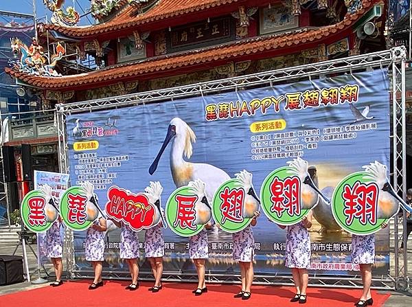 【柿子日報記者李玲/台南報導】2024黑面琵鷺保育季系列活動「黑琵HAPPY、展翅翱翔」,20日在台南市七股區正王府廣場舉辦開幕典禮,包括台南市長黃偉哲、立委郭國文與市議員蔡秋蘭、蔡蘇秋金、陳昆和、方一峰及農業局代理局長陳仲杰、農業部林業及自然保育署嘉義分署長張岱、雲嘉南濱海國家風景區管理處處長許宗民、海巡署南部分署第一一岸巡隊隊長王榮忠、台南市後備指揮部指揮官宋自強等級社區民眾700多人到場共襄盛舉。
