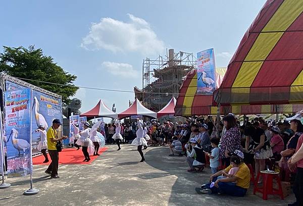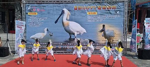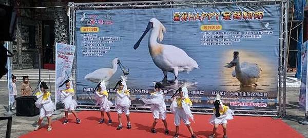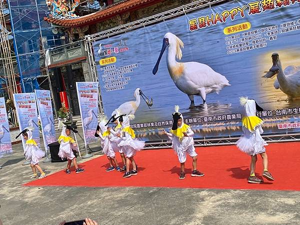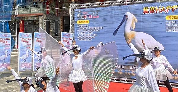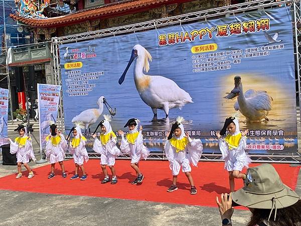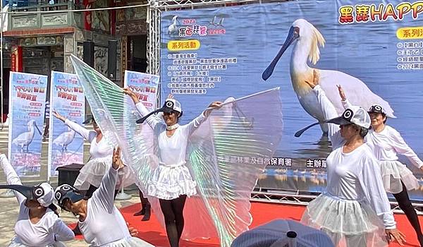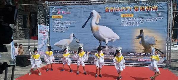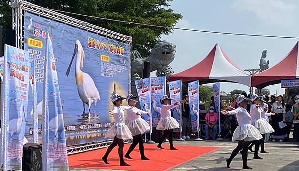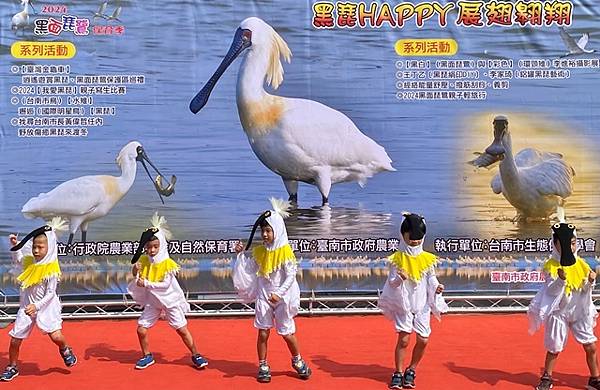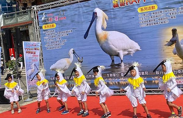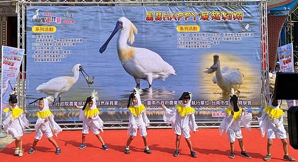 今天的保育季開幕活動在快樂家族薩克斯風團、北門國小的「木箱鼓」,以及學甲市立幼兒園可愛的小朋友扮演小黑琵跳舞、西明社區熟齡黑琵表演後揭開序幕,黃偉哲也歡迎台灣金龜車俱樂部愛好逍遙遊民眾,徜徉在舒服的秋日裡,到賞鳥亭欣賞黑琵的美麗姿態。