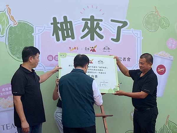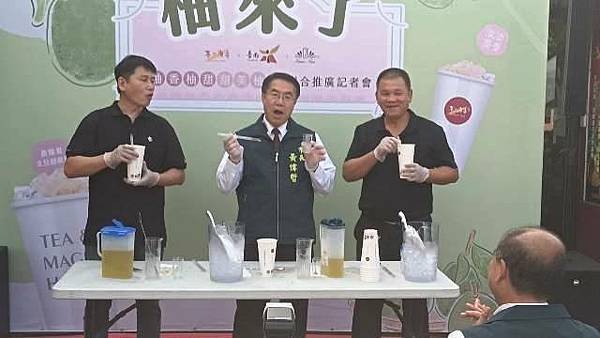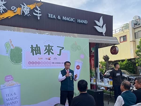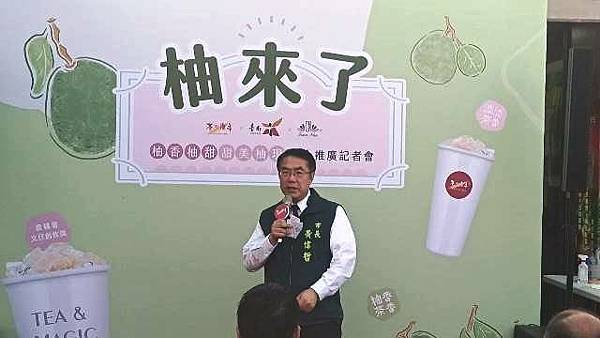 【柿子日報記者李玲/台南報導】為推廣臺南文旦柚,臺南市長黃偉哲與飲料品牌「茶之魔手」、冷凍水果大廠「冠南生物科技」共同舉辦記者會,此次合作將臺南文旦柚透過冷凍技術保存,使其突破季節限制,讓消費者一年四季都能享用到優質的臺南文旦風味,由茶之魔手將文旦結合飲品,推出「柚香柚甜」搶攻飲料百億商機,同時幫助臺南農民,推廣最棒的臺南文旦柚,創造三贏。
