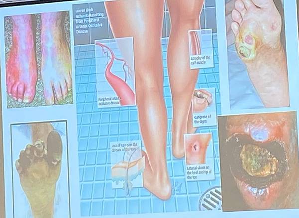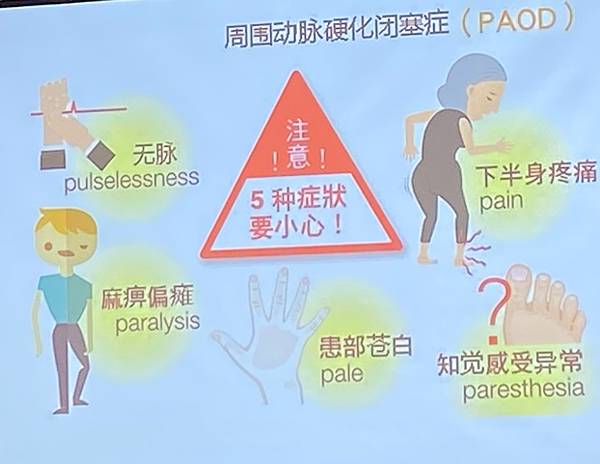 周邊動脈阻塞疾病(PAOD)是由動脈粥樣硬化引起的慢性疾病。高風險族群包括年長者、糖尿病、高血壓、高膽固醇血症、洗腎、吸菸和肥胖者。當硬化的斑塊增多,動脈逐漸狹窄甚至完全閉塞,導致血液供應不足—常見於下肢動脈—會造成一系列的健康問題。多數病人為慢性、漸行性的血管阻塞,常在運動時下肢疼痛、無力或麻木,休息後即可緩解,稱為間歇性跛行。然而,隨著疾病進展到晚期,病人在休息時也會感到肢體疼痛,且伴隨皮膚冰冷、變色、發紺、脫髮等循環不良的徵兆。如果未及時治療,可能導致嚴重的肢體潰瘍或壞疽,最終需進行截肢。